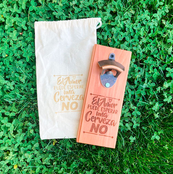Destapador de madera para botellas, adosable a muro. Producto disponible a pedido.